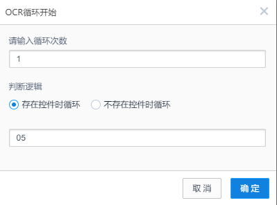 OCR循环开始:通过OCR识别的方式获取页面控件中的文本与期望文本进行比对,如果存在则执行循环体,如果不存在则跳过循环体执行后续步骤。