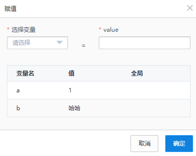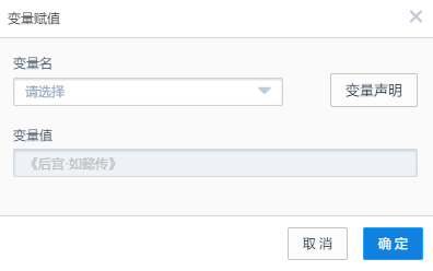 - 在弹框选择变量、赋值方式(根据赋值方式输入相关内容,目前支持正则和字符串两种查找方式)