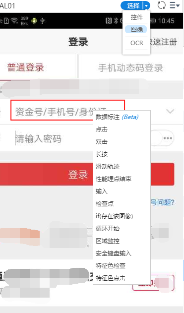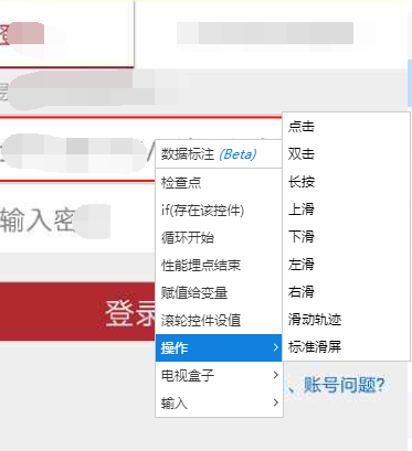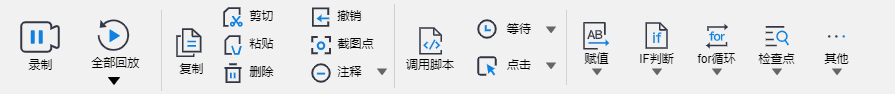 点击、双击、长按、滑动轨迹、性能埋点结束、检查点、if(存在该图像)、循环开始、安全键盘输入