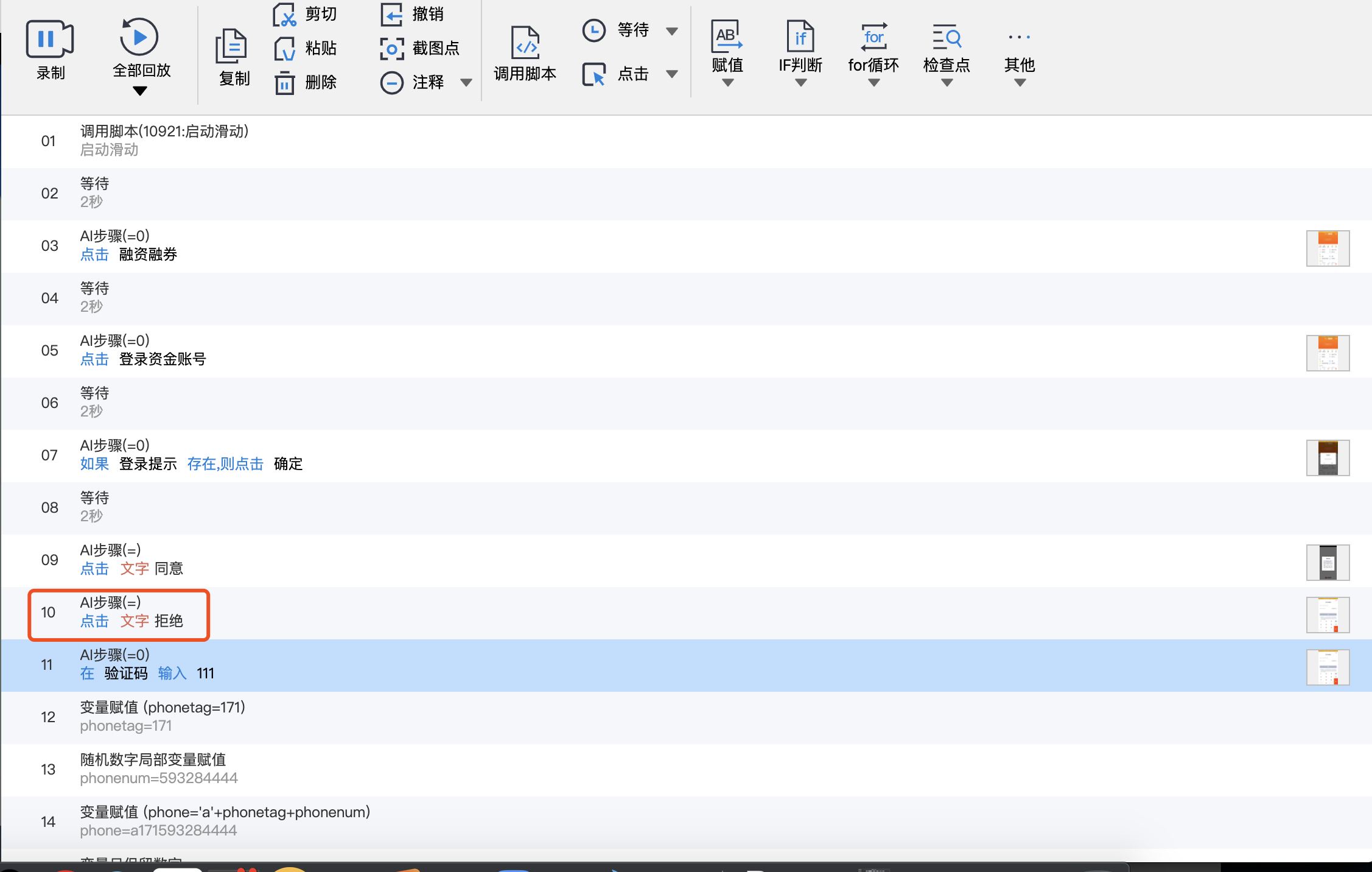 点击操作、if判断、for循环、:与控件/OCR操作类似,都是在脚本中插入逻辑控制操作。